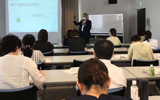 セミナーには県内の教職員約30人が参加。行員が教師役となって経済の仕組みや資産形成の方法、重要性、実践に向けたポイントなどを授業形式で解説。埼玉りそな銀が埼玉県教育委員会と連携して作成した金融教育の授業プログラムを、教職員が体験した。