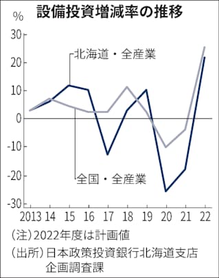 北海道の22年度設備投資額22%増、政投銀調べ - 日本経済新聞