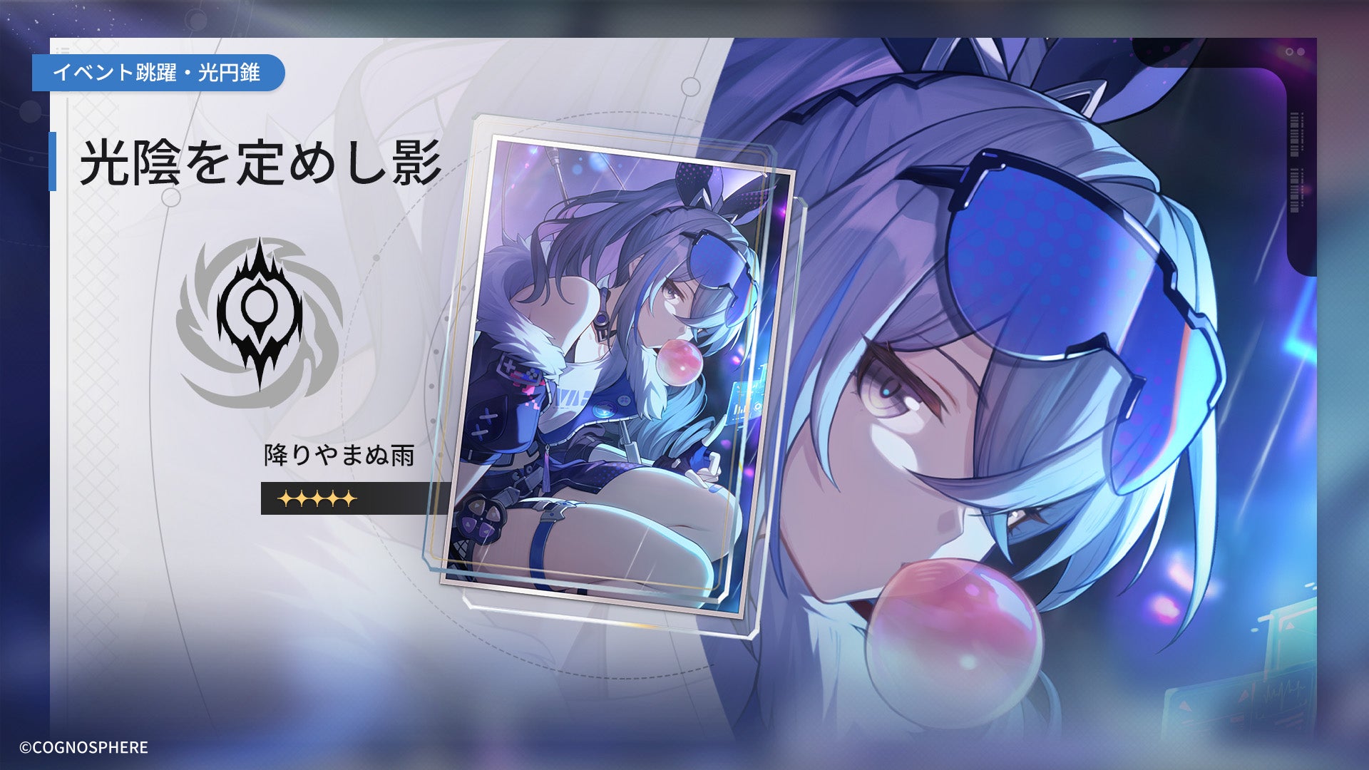 また、同時開催中の「光陰を定めし影」では、星5光円錐「降りやまぬ雨」の出現率がアップします。