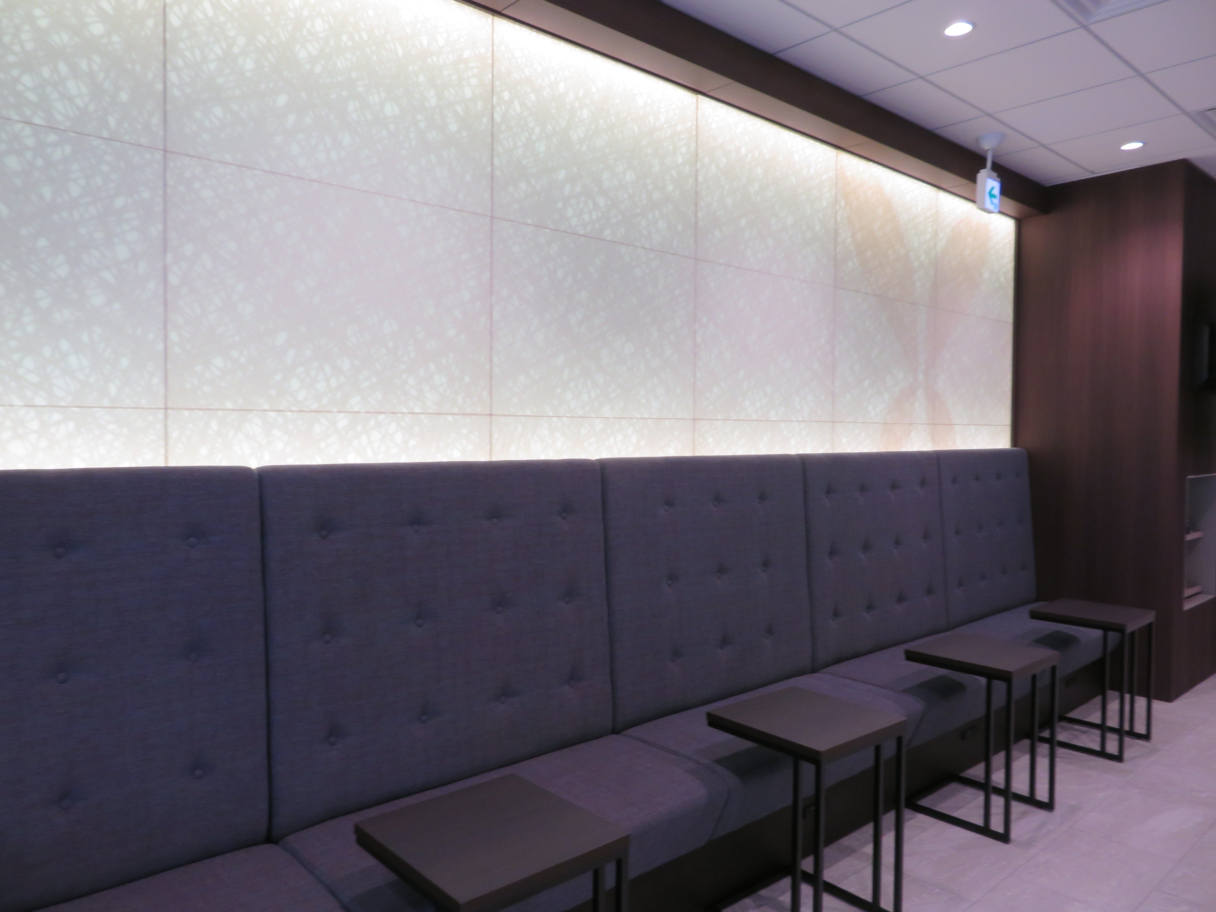 ロビー壁面には伝統的な手法で作られた「小国和紙」を使用した「光壁(ひかりかべ)」を採用しました。
