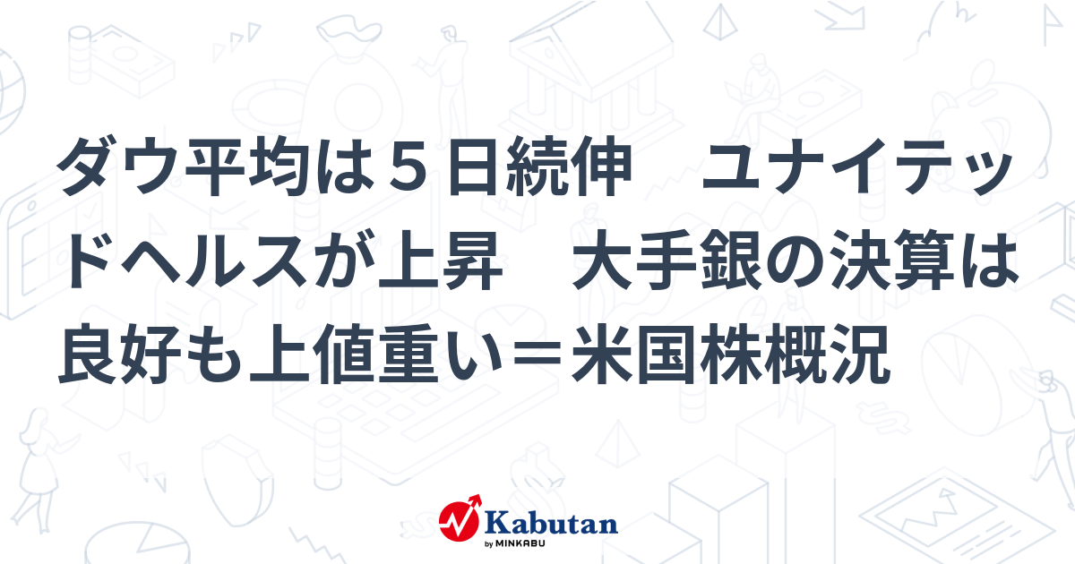 ダウ平均は5日続伸 ユナイテッドヘルスが上昇 大手銀の決算は良好も上値重い=米国株概況 | 市況 - 株探ニュース