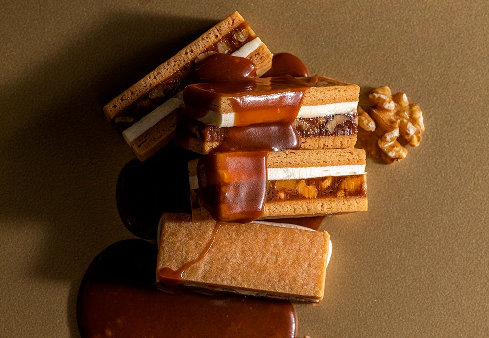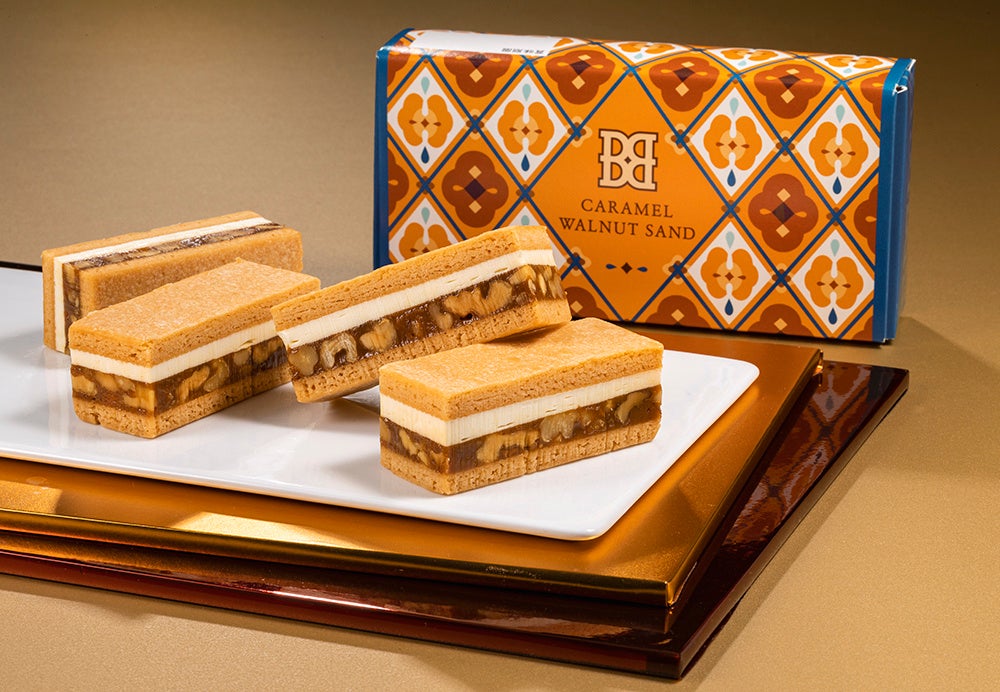 バタースイーツ専⾨店『BUTTER STATE's(バターステイツ)』から昨年好評いただいた『キャラメルくるみサンド』が期間限定で登場いたします。自家製キャラメルにくるみを敷きつめて バタークリームと2層に重ねたこっくり秋色のバターサンド。バタースイーツ専門店だからこそ生まれた、バターとキャラメルのうまみがとろけあうこだわりの味わいを心ゆくまでご堪能ください。