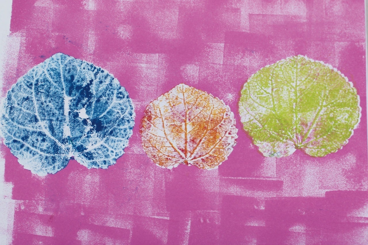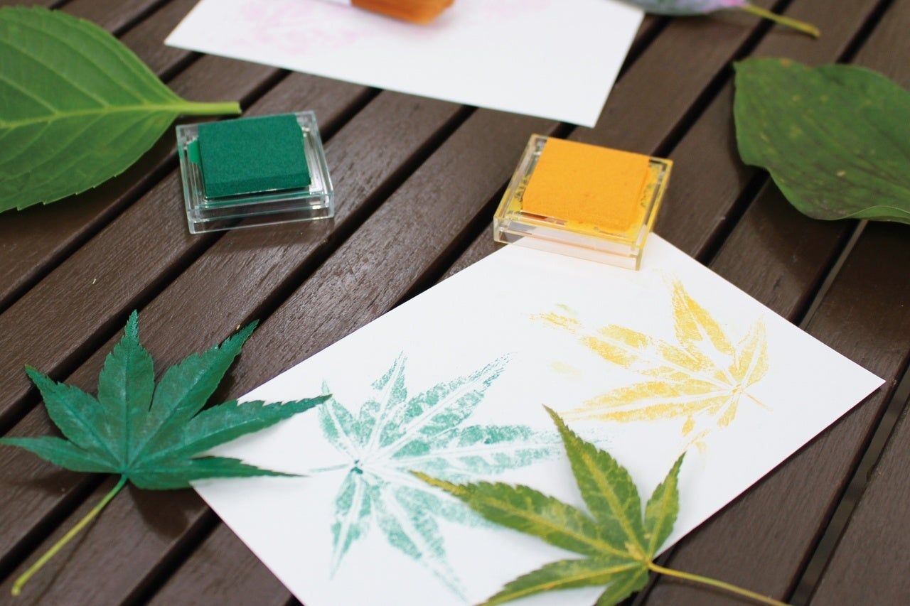 気の向くままにぺたぺたと葉っぱをスタンプするだけで、素敵なアートが出来上がり。